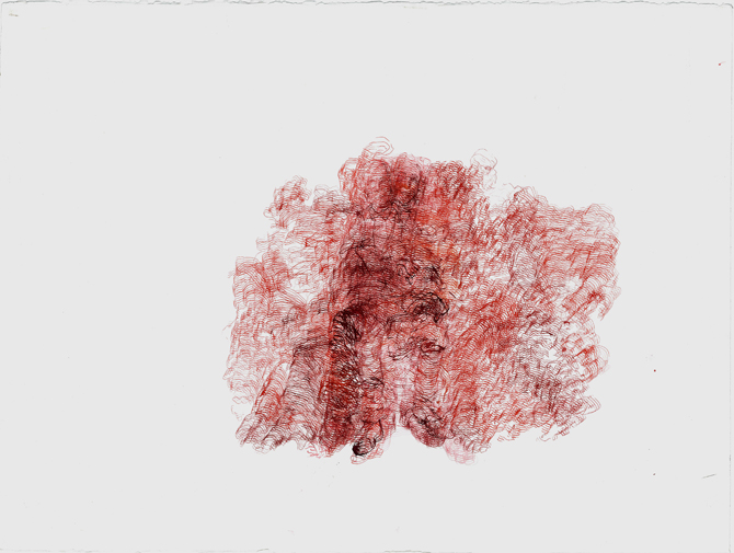 O impulso que origina estes desenhos ocorre como uma aproximação imaginária à hipótese prévia de um acontecimento: uma sequência de figuras, dispostas como uma máquina de Rube Goldberg, estabelece uma reacção em cadeia de gestos que tentam reproduzir, sobre o corpo, um padrão de linhas horizontais paralelas.