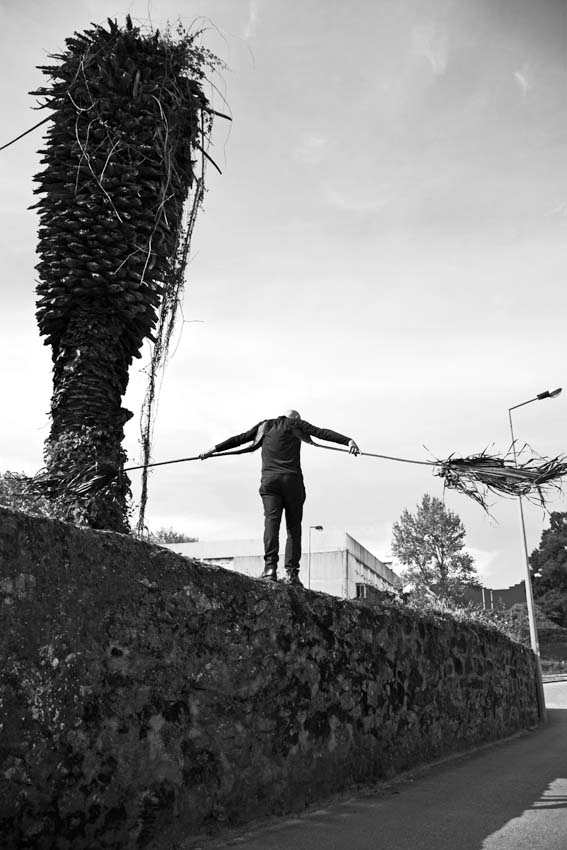 It occurs in several places in the city of Porto, around the abandoned trunks of palm trees that have died in the last years. Discreetly, these trunks are also being removed to prevent them from falling. With their effacement from the city’s landscape, it is as if the palm trees had never existed here.